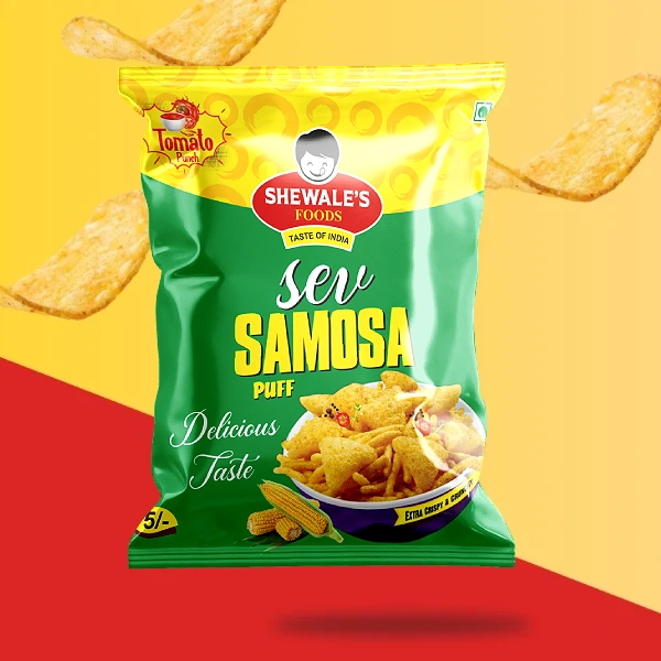 Our Sev Samosa Puff is a delightful fusion of crispiness and bold Indian flavors. Each bite combines the tangy zest of Tomato Punch with the satisfying crunch of perfectly roasted samosa-shaped puffs, creating an irresistible snacking experience.